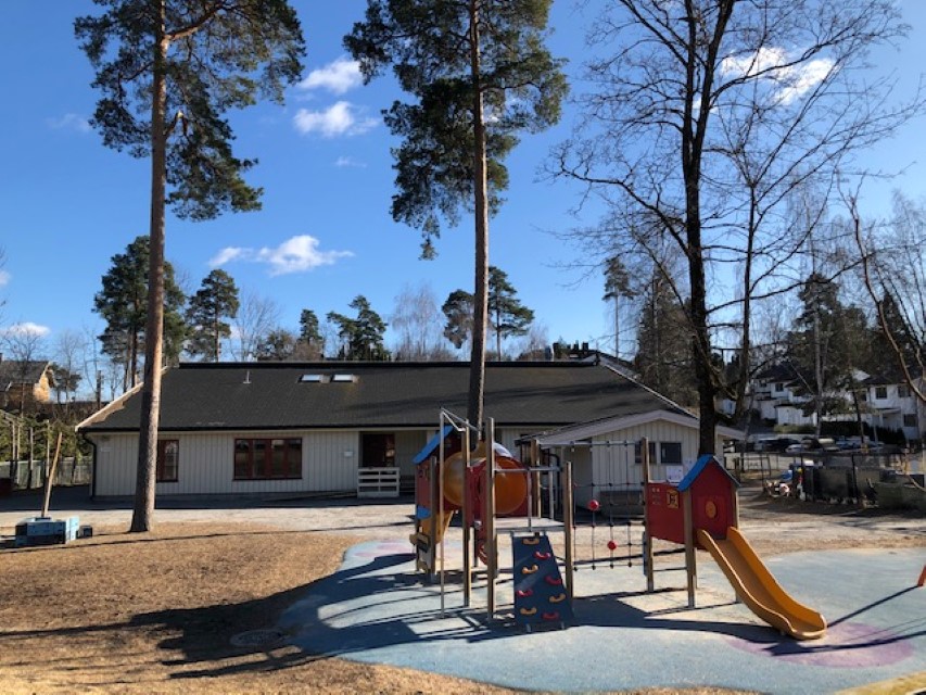 Skogveien barnehage ligger i Skogtunet 2, et etablert boligområde på Stabekk.