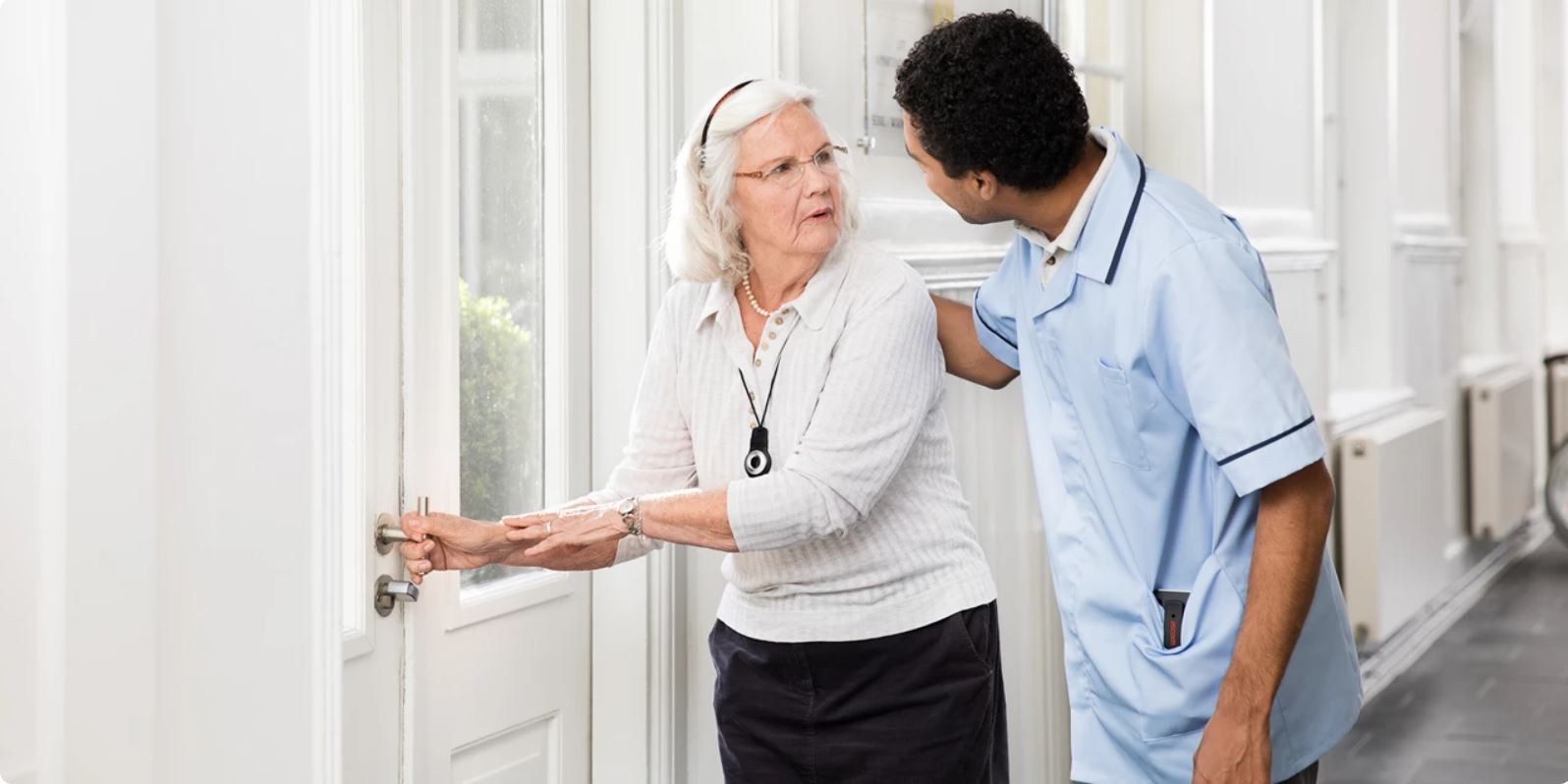 For personer med demens kan en trygghetsalarm gi større frihet. Med trygghetsalarm kan man bevege seg fritt rundt på institusjonen. For dem som beveger seg utenfor institusjonen på egen hånd, kan lokaliseringsteknologi (GPS) være aktuelt i tillegg.
